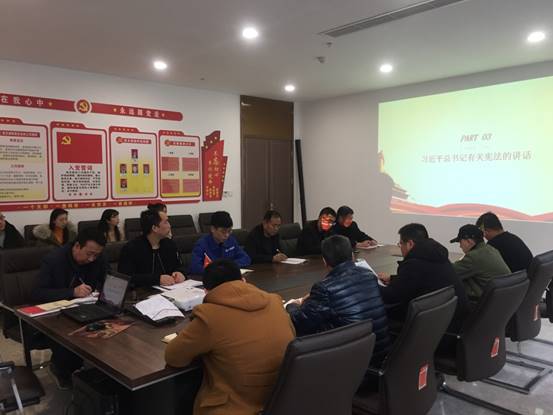 12月7日,成都公司黨支部組織各部室員工及施工單位、監(jiān)理單位相關(guān)人員開展了“憲法進項目”主題黨日活動。此次主題黨日活動由成都公司黨支部書記馬臻奇主持,活動主要學(xué)習(xí)了三項內(nèi)容,一是學(xué)習(xí)置業(yè)公司關(guān)于做好2019年國家憲法日及憲法宣傳周有關(guān)工作的通知;二是學(xué)習(xí)《中華人民共和國憲法修正案》;三是學(xué)習(xí)習(xí)近平總書記有關(guān)憲法、全面依法治國的講話精神。