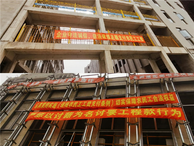 與此同時為做到《條例》家喻戶曉、人人皆知,提醒廣大農(nóng)民工依法維權(quán)意識,在工地醒目位置懸掛宣傳條幅標(biāo)語、設(shè)立宣傳板,為《條例》的正式實施營造良好的社會輿論氛圍。(通訊員:金春燕)