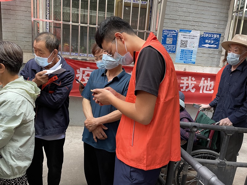 一大早,疫苗接種現場就已排起長隊,在與社區(qū)衛(wèi)生服務中心的醫(yī)務工作者詳細了解疫苗接種的具體流程和注意事項后,志愿者們紛紛投入到各自的分配工作中,由于現場接種人員多為老人和未成年人,志愿者們便耐心幫助老人打開他們手機上健康碼并為他們測量體溫。在入口處和預檢臺,志愿者提醒每一位來接種的群眾準備好相關材料,并幫助一些患有眼疾的老人填表登記。為保證疫苗接種的有序開展,一部分志愿者為現場接種人員提供秩序引導、預約登記、留觀提示、情緒安撫等服務并向接種者講解接種疫苗注意的事項以及留觀30分鐘注意事項?,F場忙得不可開交。一天下來,志愿者們精疲力盡,但因為收獲了很多的“謝謝”,內心感到充實又欣慰。