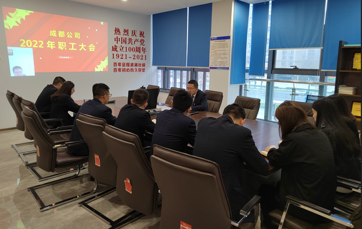 3月2日,成都公司召開2022年職工大會,置業(yè)公司黨委委員、副總經(jīng)理馬臻奇通過視頻形式出席會議,成都公司全體職工參會。