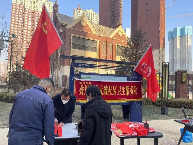 寫春聯(lián)、貼福字,是中國人過年的傳統(tǒng)習(xí)俗,象征著吉祥如意,是人們表達(dá)向往美好生活的一種方式。春節(jié)將至,為豐富小區(qū)文化生活,營造健康祥和、積極向上的文化氛圍和節(jié)日氣氛,提前為業(yè)主們送上新春的祝福,百酈灣物業(yè)服務(wù)中心于1月2日,特邀請(qǐng)小區(qū)部分書法愛好者業(yè)主們,舉辦了“迎新春、送春聯(lián)”新春送?;顒?dòng)。同時(shí)邀請(qǐng)秀川街道大灘社區(qū)衛(wèi)生服務(wù)站的醫(yī)護(hù)人員現(xiàn)場為小區(qū)眾多老年人免費(fèi)測量血壓、測血糖,吸引了業(yè)主們踴躍參與。