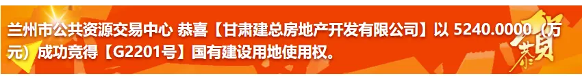 5月12日,甘肅建總房地產(chǎn)開發(fā)有限公司以5240萬元成功競得【G2201號】國有建設(shè)用地使用權(quán)。