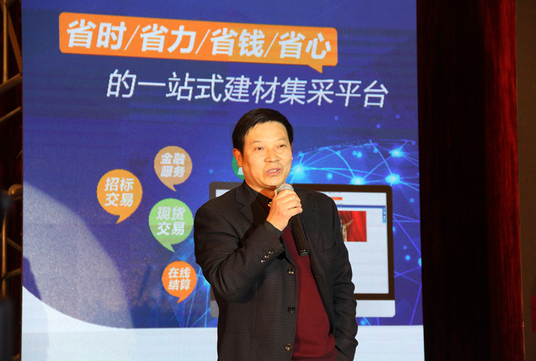 “建投大宗”電商平臺負(fù)責(zé)人張?jiān)谛聨碇黝}為“打造西北領(lǐng)先一站式建材集采平臺”的演講。