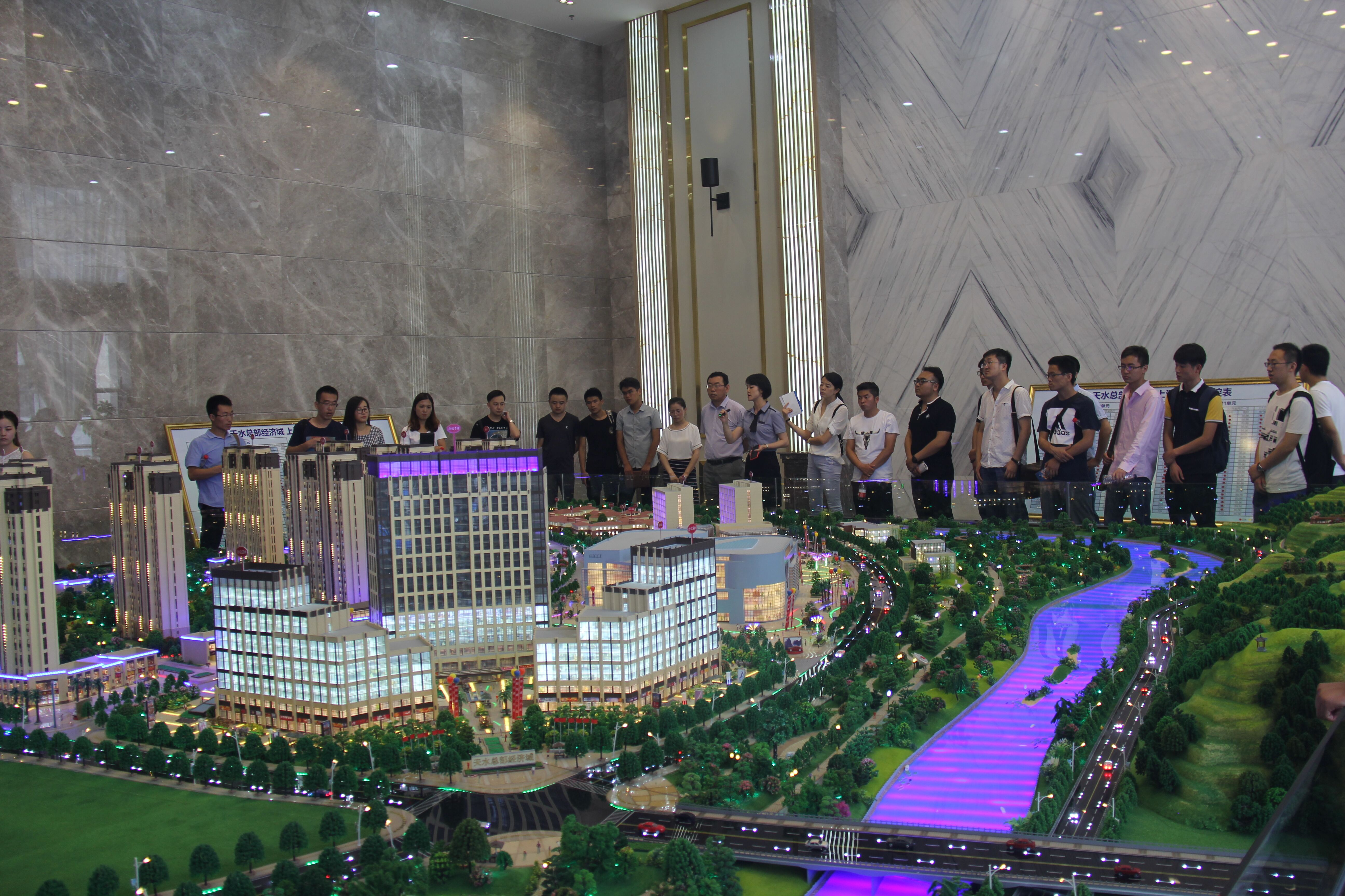 上午,天水分公司項目負責人帶領新員工先后參觀了上尚宅一期、上河郡一期和天水總部經濟城項目。項目負責人著重從開發(fā)規(guī)模、室外景觀、外立面裝飾以及戶型設計等方面做了詳細介紹。上尚宅一期風格是中式園林風格,室外景觀和沉降式廣場,讓參觀人員為之震撼。天水總部經濟城一流的施工質量和高貴典雅的裝修風格,充分彰顯甘肅建投地產的實力。